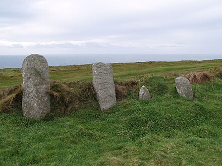 The place-name ‘Lundy’ is first attested in 1189 in the ‘Records of the Templars in England’, where it appears as (Insula de) ‘Lundeia’. It appears in the Charter Rolls (administrative records) as ‘Lundeia’ again in 1199, and as ‘Lunday’ in 1281. The name means ‘puffin island’, from the Old Norse ‘lundi’, meaning ‘puffin’. The name is Scandinavian, and it appears in the 12th-century Orkneyinga saga as ‘Lundey’. The name is known in Welsh as ‘Ynys Wair’, or Gwair’s Island, in reference to an alternative name for the wizard Gwydion. Lundy has evidence of visitation or occupation right from the Mesolithic period onward, with Neolithic flintwork, Bronze Age burial mounds, four inscribed gravestones from the early medieval period and an early medieval monastery possibly dedicated to St Elen or St Helen.