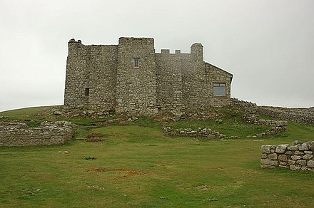 In 1235 William de Marisco was implicated in the murder of Henry Clement, a messenger of King Henry III. Three years later, an attempt was made to kill the King by a man who later confessed to being an agent of the Marisco family. William de Marisco fled to Lundy where he lived as a virtual king. He built a stronghold in the area now known as Bulls’ Paradise with 9-foot (3-metre) thick walls. In 1242, King Henry III sent troops to the island. They scaled the island’s cliff and captured William de Marisco and sixteen of his ‘subjects’. Marisco Castle was built by King Henry III in about 1250 high up on the south-east point of Lundy Island in the Bristol Channel and this was in an attempt to establish the rule of law on the island with its surrounding waters. In 1275 the island is recorded as being in the Lordship of King Edward I, but by 1322 it was in the possession of Thomas, 2nd Earl of Lancaster and was among the large number of lands seized by King Edward II following Lancaster’s execution for rebelling against the King. At some point in the thirteenth century the monks of the Cistercian order at Cleeve Abbey held the rectory of the island. By 1787 cottages had been built round the small courtyard inside the Keep. (In recent times these have been rebuilt by the Landmark Trust for holiday rental.) Over the next few centuries, the island was hard to govern. Trouble followed as both English and foreign pirates as well as privateers, including other members of the Marisco family, took control of the island for short periods. Ships were also forced to navigate close to Lundy island because of the dangerous shingle banks in the fast flowing River Severn and Bristol Channel, with its tidal range of 27 feet (8.2 metres), one of the greatest in the world. This made the island a profitable location from which to prey on passing Bristol-bound merchant ships bringing back valuable goods from overseas. In 1627 a group known as the ‘Salé Rovers’, from the Republic of Salé (now Salé) in Morocco occupied Lundy for five years. These Barbary Pirates, under the command of a Dutch renegade named Jan Janszoon, flew an Ottoman flag over the island. Slaving raids were made, embarking from Lundy by these Barbary Pirates, and captured Europeans were held on Lundy before being sent to Algiers to be sold as slaves. From 1628 to 1634, in addition to the Barbary Pirates, the island was plagued by privateers of French, Basque, English and Spanish origin targeting the lucrative shipping routes passing through the Bristol Channel. These incursions were eventually ended by Sir John Penington, an English admiral who served under King Charles I, although in the 1660s and as late as the 1700s the island still fell prey to French privateers. In the English Civil War (1642 to 1651), Thomas Bushell held Lundy for King Charles I, rebuilding Marisco Castle and garrisoning the island at his own expense. He was a friend of Francis Bacon, a strong supporter of the Royalist cause and an expert on mining and coining. It was the last Royalist territory held between the first and second civil wars. After receiving permission from King Charles I, Bushell surrendered the island on 24 February 1647 to Richard Fiennes, representing General Fairfax. Then in 1656, the island was acquired by Lord Saye and Sele.